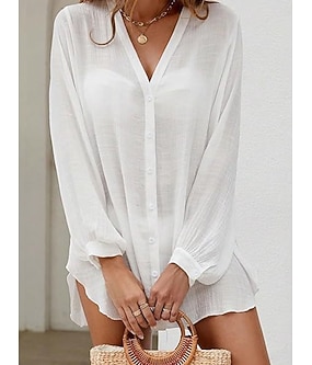 Mulheres Minivestido Vestido branco vestido de praia Vestido preto Cobertura Elegante Moda Clássico Diário Ao ar livre Praia Ajuste Largo Tecido Manga Longa Decote V Preto Branco Verão Primavera