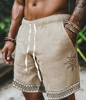 Homens Shorts de linho Shorts sociais Shorts de verão Shorts de praia Short plissado Bolsos Pregas Perna reta Tecido Conforto Respirável Comprimento do joelho Ao ar livre Casual Diário Férias Moda