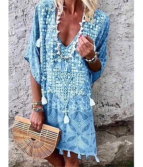 Mulheres Minivestido Vestido antigo Vestido casual Vestidos Boho Chic Vestido Boho Boêmia Étnico Férias Feriado Ajuste Largo Geométrica Tribal Meia Manga Decote V Rosa Vinho Verde cáqui Verão