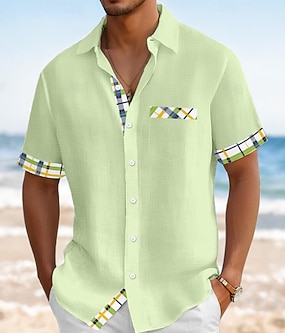 Homens Camisa Social Camisa de linho camisa de verão Roupa de Praia camisa de botão Côr Sólida Férias Curise Azul Marinha Laranja Verde Azul Claro Manga Curta Colarinho Verão Primavera Verão Roupa