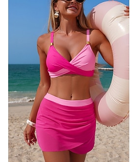 Mulheres Roupa de Banho Biquíni 2 partes Saia roupa de banho Delgado Frente Única Férias Roupa de Praia Côr Sólida Decote V Sem Manga Fatos de banho