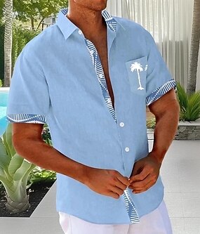 Homens Camisa Social Camisa de linho camisa de verão Roupa de Praia camisa de botão Estampa floral Férias Curise Branco Azul Marinha Verde cáqui Manga Curta Colarinho Verão Primavera Verão Roupa