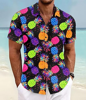 Homens Ananás Camisa Social Camisa havaiana Camiseta Aloha Manga Curta Camisa Aberto para a Lateral Férias Havaiana Ao ar livre Férias Havaiana Azul Roxo Fúcsia S M L
