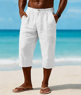 Homens Calção Shorts de linho Shorts de praia Calças Capri Com Cordão Cintura elástica Tecido Conforto Respirável Comprimento da panturrilha Ao ar livre Diário Feriado Férias Casual Preto Branco
