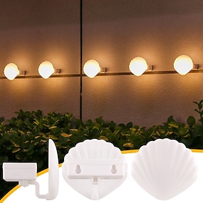 Conjunto de 4 luminárias solares de parede à prova d'água, com estrutura em formato de concha, ideais para decoração externa de casas, muros, varandas, jardins e paisagens em feriados.