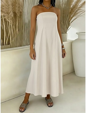 Mulheres Vestido Longo Vestidos de algodão e linho Vestido casual Vestido A Line Moda Moderno Diário Férias Para Noite Normal Tecido Sem Manga Sem Alças Preto Roxo Marron Cáqui Verão Primavera Outono