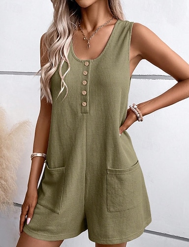 Mulheres Normal Macacão Roupa de rua Côr Sólida Sem Manga Decote U Botões Bolsos Rua Diário Normal Preto Verde Claro Rosa Verão