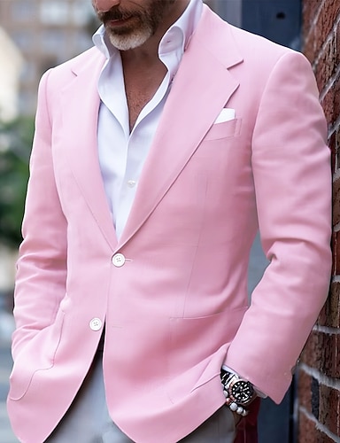 Homens Blazer O negócio Coquetel Festa de Casamento Moda Casual Primavera & Outono Poliéster Côr Sólida Bolsos Botões Confortável Não Trespassado Jaqueta esporte Rosa Claro Amarelo Rosa Azul Royal