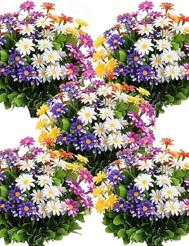 10 flores artificiais para exterior, decorações de flores de plástico, simulação de margaridas, buquês, arbustos de flores artificiais resistentes a raios ultravioleta, casa, hotel, escritório, festa