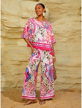 Mulheres Conjuntos de calças Meia Manga Borboleta Decote Redondo Gráfico Estampado Cashemere Elegante Férias Casual Diário Azul Rosa Laranja Primavera Verão