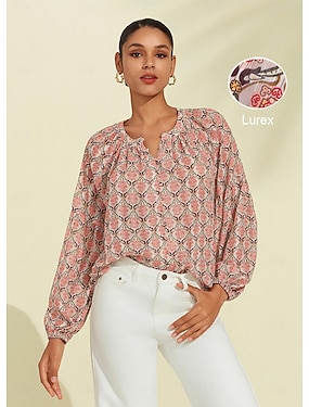 Mulheres Blusa Vazado Tecido Vintage Tropical à moda Manga Curta Gola Redonda Tops regulares Diário Feriado Para Noite Preto Rosa Roxo Verão Primavera Outono Inverno