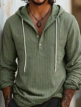 Homens Camisa Social Camisa de linho camisa de verão Roupa de Praia Camisa com capuz Camisas listradas Tiras verticais Casual Férias Preto Branco Azul Marinha Verde Manga Longa Capuz Verão Primavera