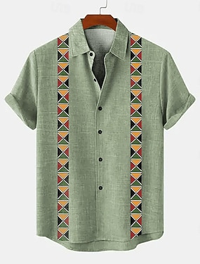 Homens Camisa Social camisa de linho camisas retrô camisa vintage Camisa étnica Tribal Diário Marron Verde Cinzento Manga Curta Aberto para a Lateral Verão Primavera Roupa