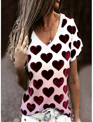 Dia dos Namorados Mulheres Camiseta T-shirt Imprimir Coração Gráfico à moda Clássico Casual Manga Curta Decote V Tops regulares Diário Para Noite Final de semana Rosa Verão Primavera