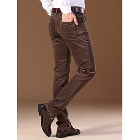 Homens Social Calças de Veludo Calças Bolsos Tecido Conforto Respirável Escritório Negócio ダークカーキ Preto