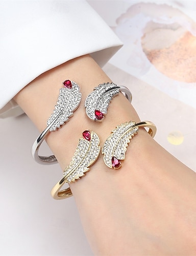 Zircão Incompatível Formato de Folha Personalizada Na moda cromada Pulseira de jóias Prata / Dourado / Dourado 2 Para Casamento Festa Noivado Baile de Formatura