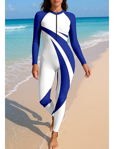 Mulheres Anti Atrito Trajes de banho de corpo inteiro Segunda-pele para Mergulho Retalhos Zip Para As Costas UPF50+ Secagem Rápida Elasticidade Alta Manga Longa Roupa de Banho Surfe Mergulho