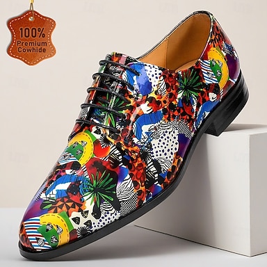 Homens Moda Importante Festas & Noite Couro Couro de grão integral italiano Antiderrapante Com Cadarço Arco-íris Verão Primavera Todas as Estações