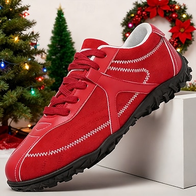 Tênis masculino vermelho com forro de pele – calçado casual moderno para o Natal e as festas de fim de ano.