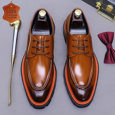 oxfords masculinos de couro marrom com relevo – sapatos kentucky derby para negócios e eventos especiais