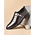 Sapatos oxford masculinos de couro sintético envernizado – sapatos sociais com cadarço vermelho e branco e salto grosso, calçados formais elegantes para casamentos, festas e apresentações no palco