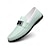 Sapatos masculinos slip-on em couro azul com detalhes metalizados e tachas - calçado moderno para usar à noite.
