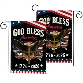 Conjunto de 2 bandeiras de jardim comemorativas do 250º aniversário dos EUA, com águia patriótica, cruz e a inscrição "Uma Nação Sob Deus". Decoração durável para jardins e áreas externas, ideal para celebrações.