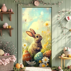 Páscoa Pôsteres Tampa da porta Banners externos Rabbit Estilo bonito 3D De Festa Dorm Sala de Adolescentes Dormitório da faculdade Quarto de fraternidade da caverna masculina Fundos de fotografia