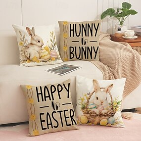 Conjunto de 4 capas de almofada quadradas com estampa de coelhinho da Páscoa, capas decorativas de primavera para sofá.