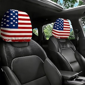 Conjunto de 2 capas para encosto de cabeça de carro com estampa da bandeira americana, estrelas e listras vermelhas, brancas e azuis, tamanho universal, fáceis de limpar, macias e confortáveis, ideais
