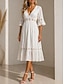 Mulheres Vestido midi Vestido branco Camisetão Elegante Moda Moderno Ao ar livre Férias Para Noite Normal Tecido Meia Manga Decote V Branco Verão Primavera