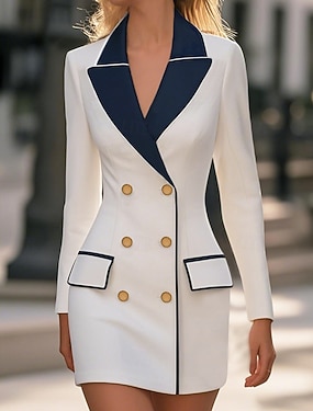 Mulheres Minivestido Vestido branco Vestido de trabalho Vestido da bainha Elegante Moda Moderno Diário Escritório Para Noite Normal Bloco de cor Manga Longa Colarinho de Camisa Branco Primavera Outono