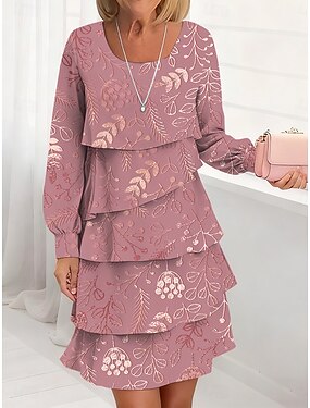 Mulheres Minivestido Vestido de turno Vestido casual Vestido de chiffon Elegante Moda Moderno Diário Ao ar livre Final de semana Normal Floral Manga Longa Gola Redonda Rosa Verão Primavera Outono