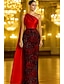 Sereia Cauda Corte Vestidos de noite Vestido de baile com sobressaia Vestido formal Elegante Brilho & Glitter Manga Longa Decorado com Bijuteria Formal Convidado do casamento Charmeuse Paetês com