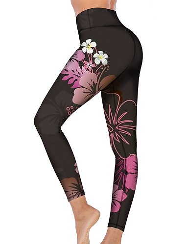 Mulheres Calças de ioga Butt Lift Compressão abdominal Cintura Alta Treino de Ginástica Corrida Ginástica Leggings Cortadas Floral Rosa claro Vermelho Azul Outono Esportes Roupas Esportivas