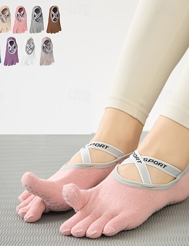 Feminino Cinco dedos dos pés Anti-fricção absorvente de suor Anti-Escorregar Meias de chão Para Pilates Dança