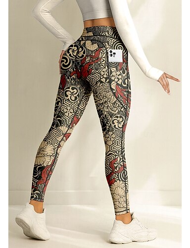 Mulheres leggings de pilates Calças de fitness Leggings casuais Bolsos Imposto de selo Patchwork Pilates Academia Treino de Ginástica Calças Meia-calça Leggings Estampado Cashemere Estampa floral