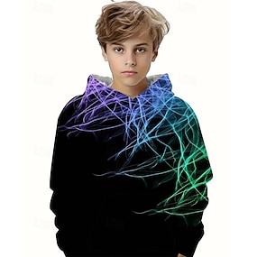 Para Meninos 3D Gráfico Relâmpago Moletom Manga Longa Primavera Outono Moda Roupa de rua Infantil 4-12 anos Com Capuz Ao ar livre Casual Diário Normal