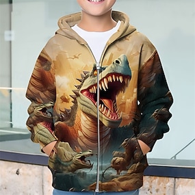 Para Meninos 3D Dinossauro Moletom Casaco Casacos Manga Longa Primavera Outono Adorável Desporto Infantil 4-12 anos Com Zíper Rua Diário Normal