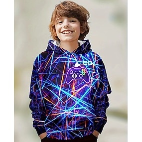 Para Meninos 3D Gráfico Jogo Moletom Manga Longa Primavera Outono Moda Roupa de rua Infantil 4-12 anos Com Capuz Ao ar livre Casual Diário Normal