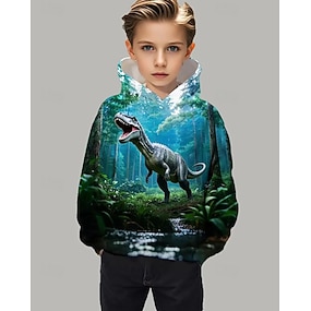 Para Meninos 3D Gráfico Dinossauro Moletom Manga Longa Primavera Outono Moda Roupa de rua Infantil 4-12 anos Com Capuz Ao ar livre Casual Diário Normal