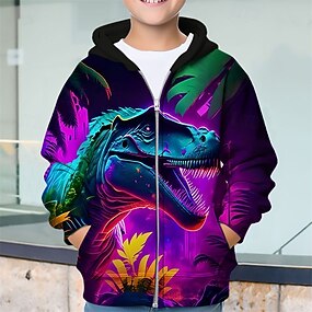 Para Meninos 3D Dinossauro Moletom Casaco Casacos Manga Longa Primavera Outono Adorável Desporto Infantil 4-12 anos Com Zíper Rua Diário Normal