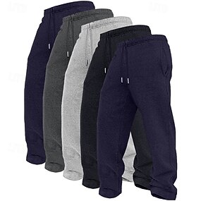 Calças de moletom masculinas de lã com perna reta, 5 peças, calças casuais, com cordão, cintura elástica, pacote múltiplo, lisas, confortáveis, comprimento total, para viagens ao ar livre, diárias,