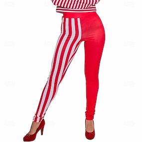 Calças Leggings Branco e Vermelho Listrado Adulto Mulheres Carnaval Festa Espetáculo Vestir-se