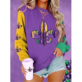 Moletom Feminino de Carnaval Pullover Gráfico Fashion Casual de Manga Longa Gola Careca Regular Tops Street Diários Impressão Roxa Verde Primavera Outono Inverno