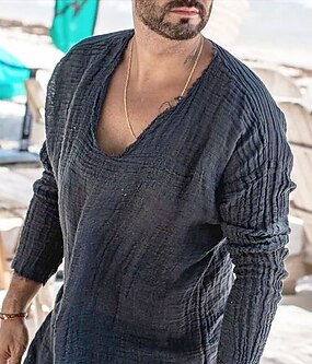 Homens Estilo Viking camisa de verão Roupa de Praia Camisa casual Tecido Férias Curise Marron cáqui Bege Manga Longa Decote V Primavera Verão Roupa