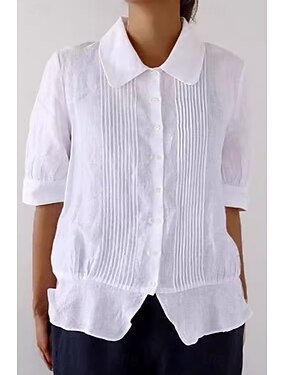 Mulheres Camisa Social Botão para cima Blusa Linho de algodão sintético Botões Tecido Básico Moderno Manga Curta Colarinho de Camisa Tops regulares Diário Feriado Para Noite Branco Verão