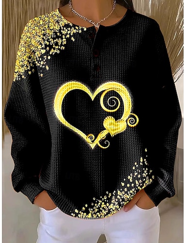 Mulheres Moletom Botões Imprimir Coração Gráfico Vintage Casual Manga Longa Gola Redonda Tops regulares Casual Rua Dia a Dia Azul Amarelo Rosa Verde Primavera Outono Inverno