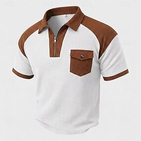 Homens Camisas Polo Waffle Pólo Casual Diário Com Zíper Quarter Zip Manga Curta Moda Básico Bloco de cor Xadrez Zíper Leve Primavera Verão Verão Primavera Moderno Preto Branco Azul Marinha Caqui