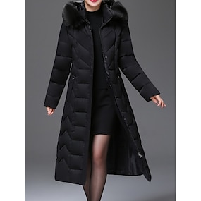 Mulheres Parka Confortável Respirável Zíper Bolsos Botões Colar de pele Casual Tecido Férias Rua Casual Roupa Diária Zíper Longo Com Capuz Normal Manga Longa agasalhos Preto Vinho Vermelho Primavera